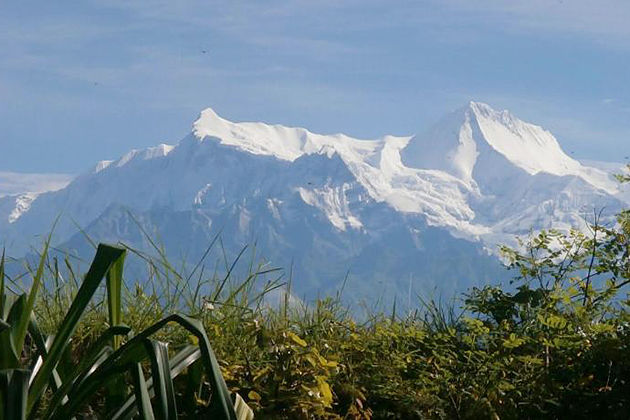 Before turning left and walking through the ethnic Chhetri Bahun Village of Kalibang, make your way to the trail that climbs up the west bank of the stream. Keep going through the farming country of Bhumdi and along a ridge, admiring the whole gorgeous view of Macharpuchare, the Annapurnas, and Manaslu Himal.